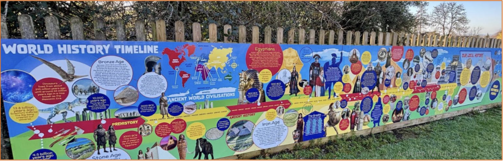 Sign of the times – This colourful nine-metre long history timeline has been installed at Tylers Green Middle School outdoor area. It also includes a section on local history.